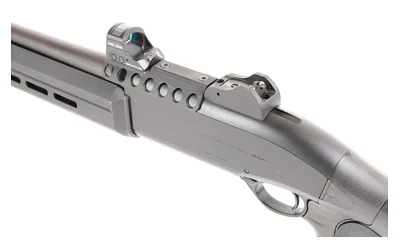 The magazine clamp can be used to more securely retain aftermarket or factory magazine extensions, while at the same time offering flexible mounting options near the shotgun muzzle. This clamp accepts a push-button quick release sling swivel.