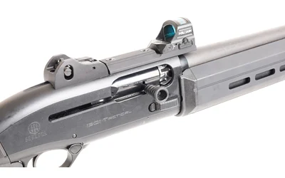 The Reflex Sight Mount for the Beretta 1301 tactical shotgun is intended to cowitness with the shotgun factory ghost ring sights, a key requirement from multiple police agencies.