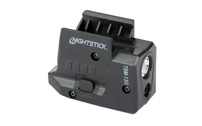 The TSM-13G Subcompact Tactical Weapon-Mounted Light with Green Laser for all Sig Sauer P365 pistols (X/XL/SAS) uses a super-bright LED rated at 150 lumens working in conjunction with a precision-engineered miniature reflector to create a bright white beam of light rated at 104 meters. This weapon light features completely ambidextrous and intuitive toggle switches on each side of the light to operate the momentary-on and constant-on lighting modes or Class IIIa 532nm daylight-visible green laser. These lighting modes include white light, laser, or both light and laser. The two glass-filled nylon plastic housings of the TSM-13G is designed to lock onto the front of the pistol’s trigger guard for secure installation and the lowest profile possible. The weapon light includes a Nightstick MagMate USB magnetically coupled charger, a trigger lock for secure charging, and an Allen screwdriver for installation and laser aim adjustments. Export Controls: The export of this product is restricted by the U.S. Department of Commerce as a controlled commodity ECCN 0A504.f. Subsequent resale and reexports of this product are subject to U.S. Export Administration Regulations (EAR).